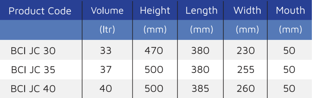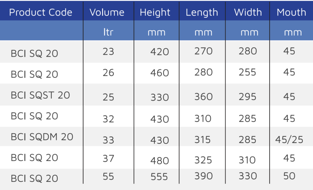BCI offers narrow – mouth drums, suitable for packing all liquid products in 3 different shapes namely the Jerry cans, the Square and Round drums: